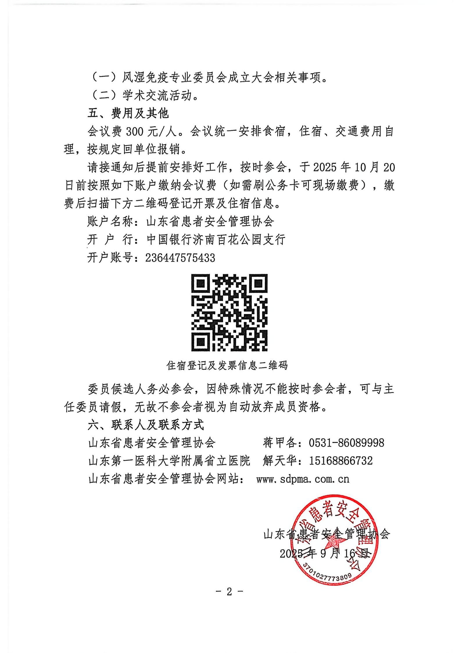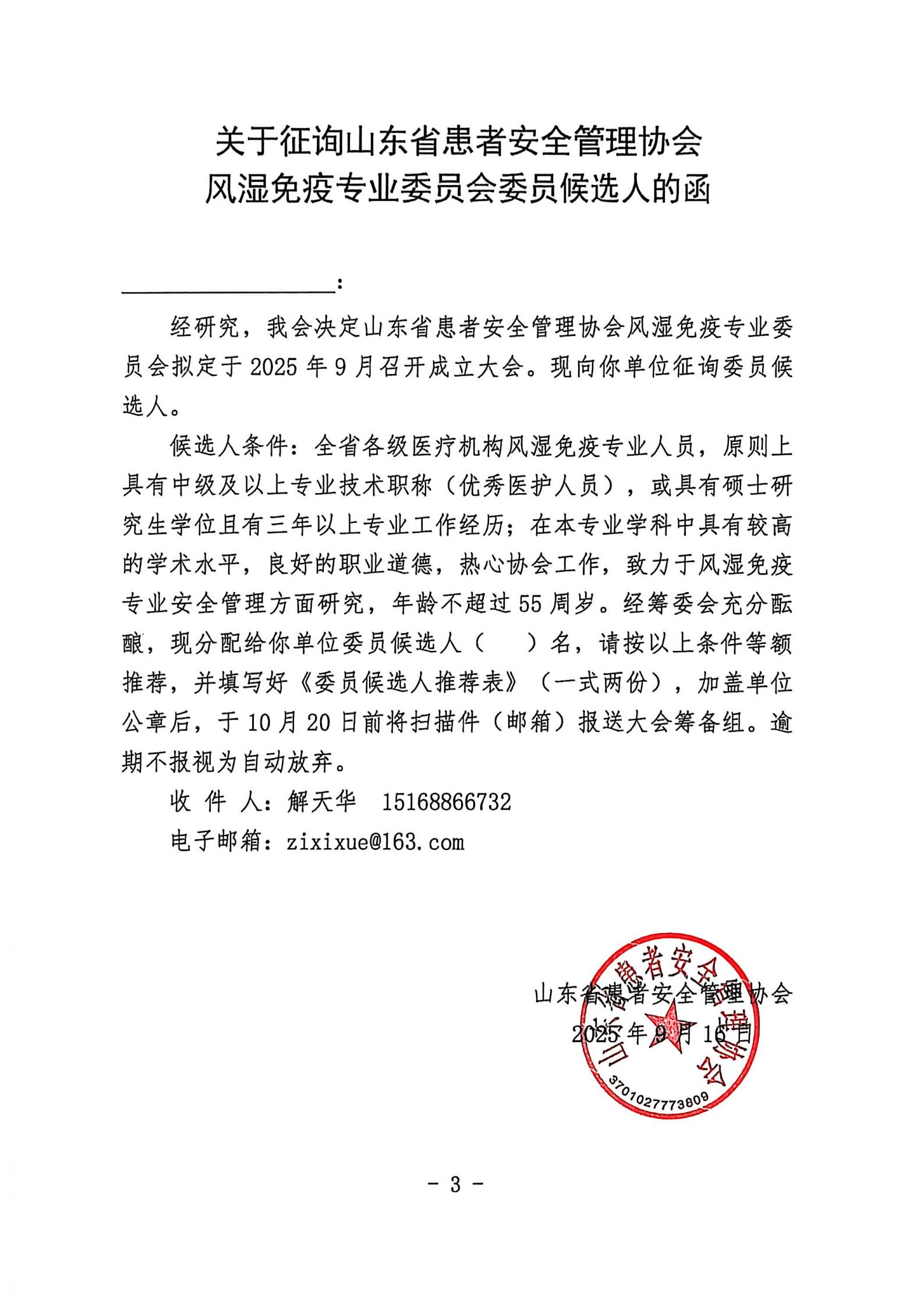关于召开山东省患者安全管理协会风湿免疫专业委员会成立大会暨第一次学术会议的通知