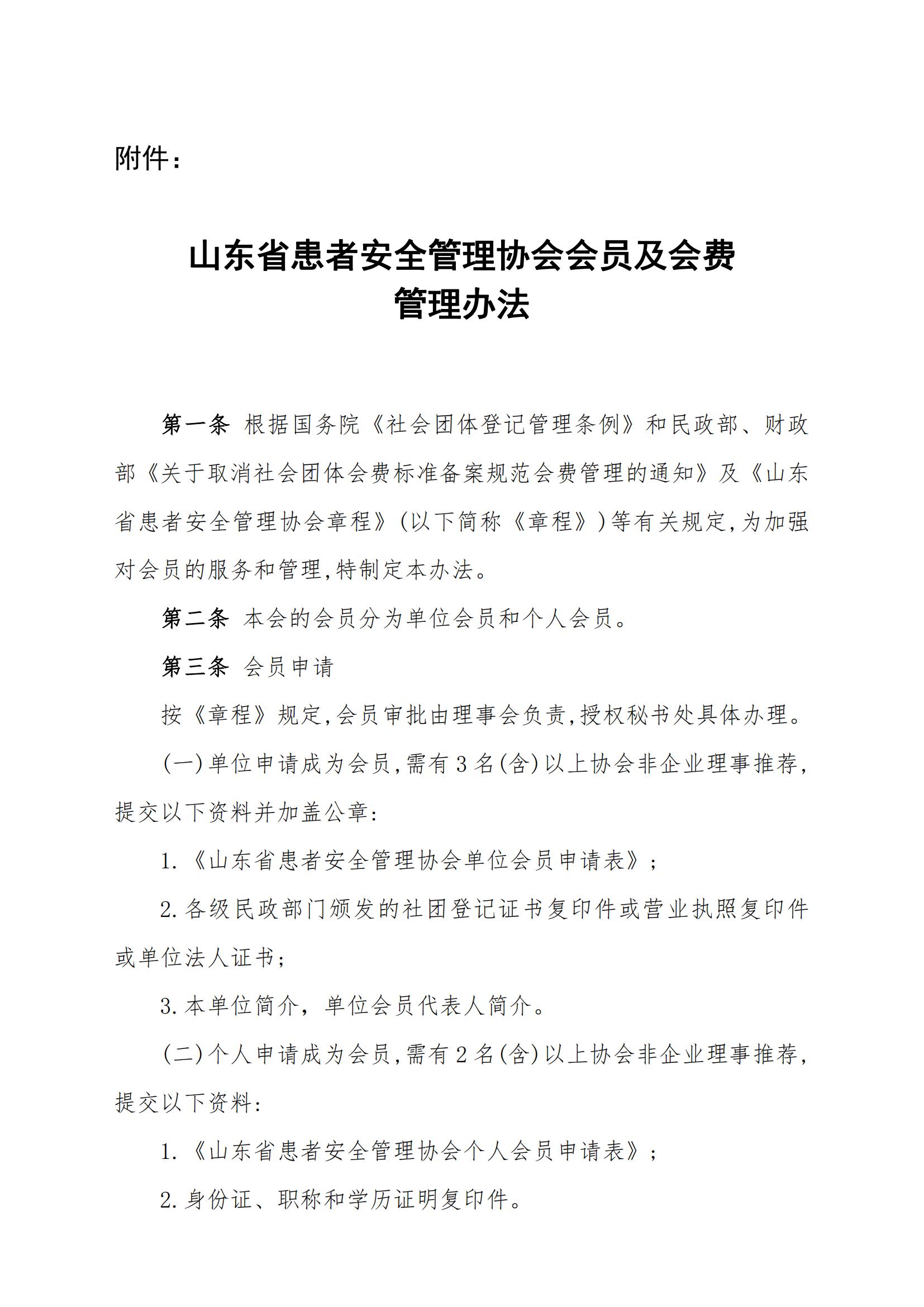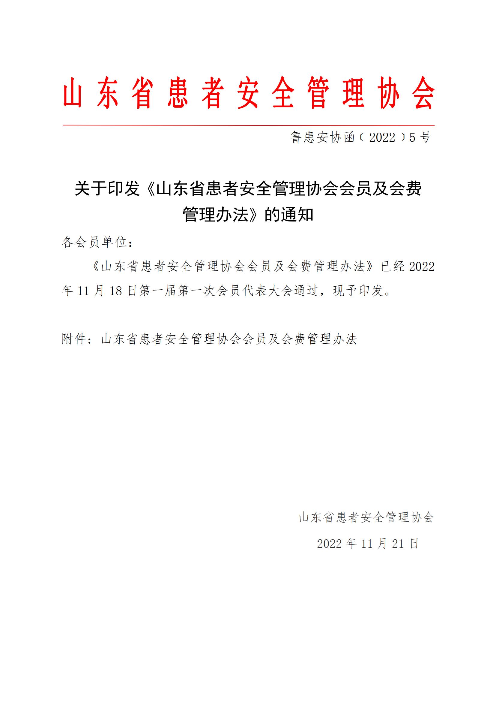 关于印发《山东省患者安全管理协会会员及会费管理办法》的通知