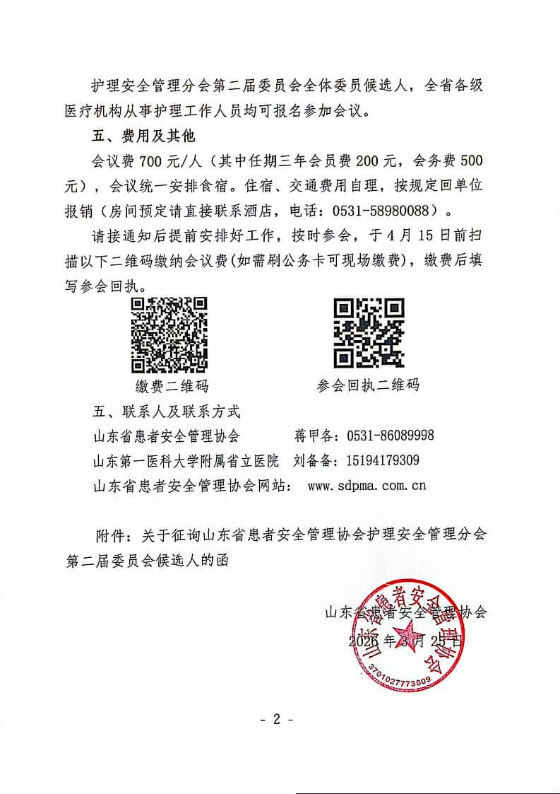 关于召开山东省患者安全管理协会护理安全管理分会换届选举会议暨2026年学术会议的通知